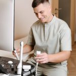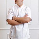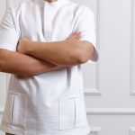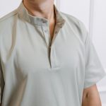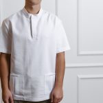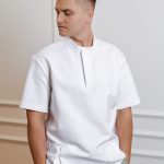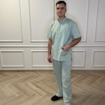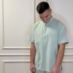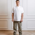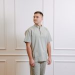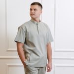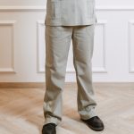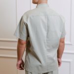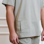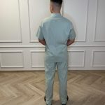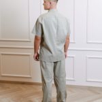 Ensemble de chemise à manches courtes avec poches, pressions et pantalon droit avec cordon de serrage et poches.