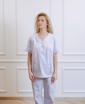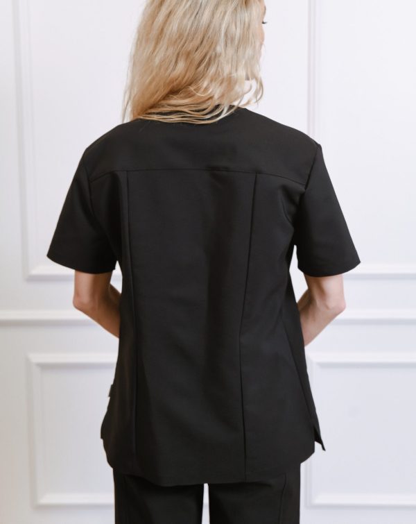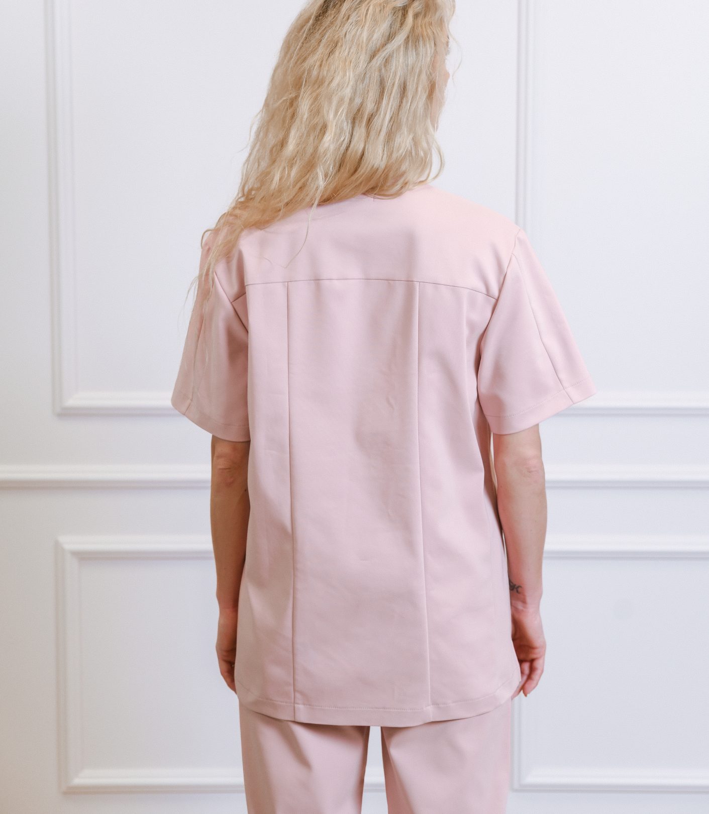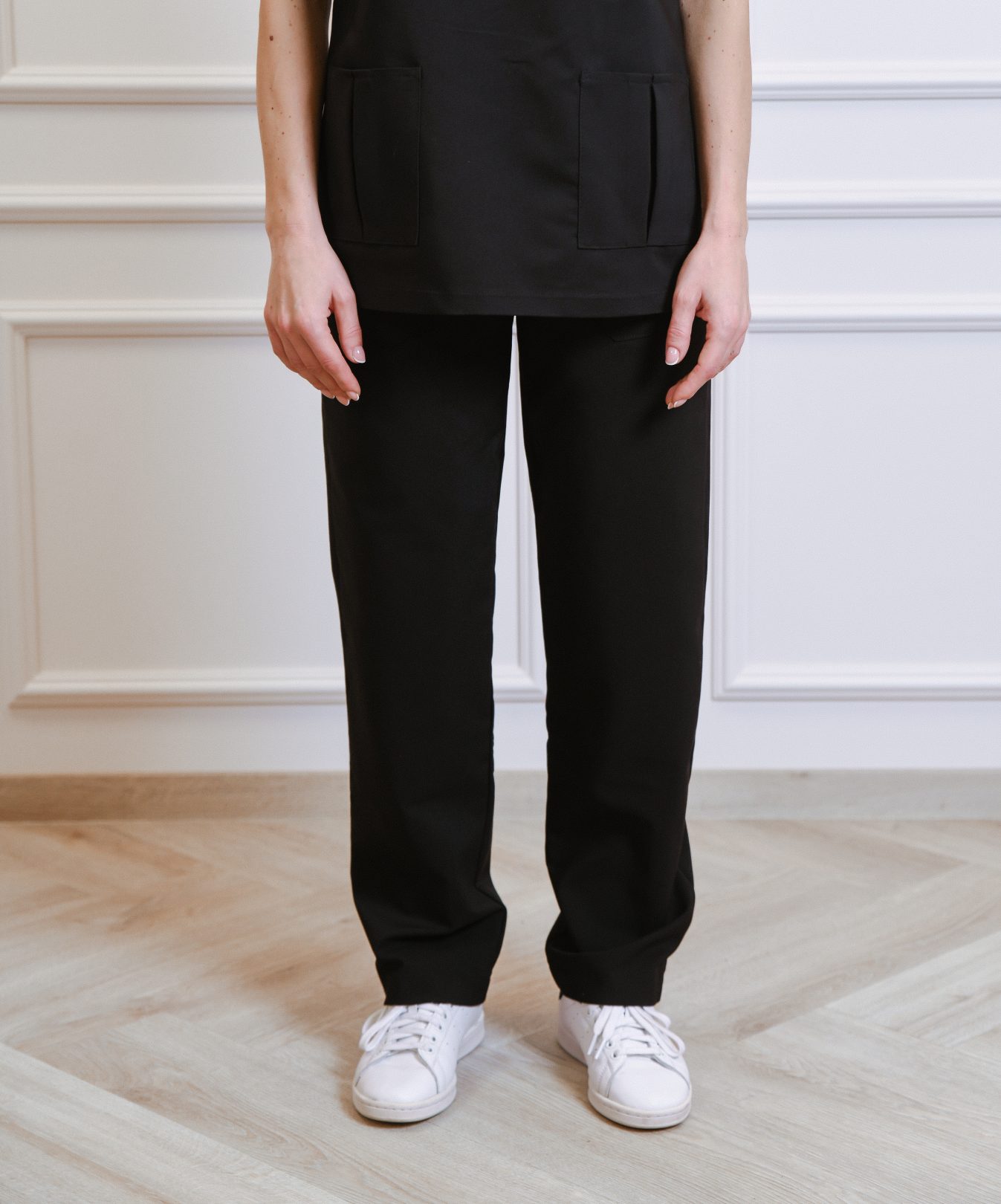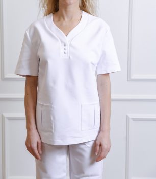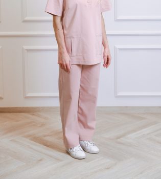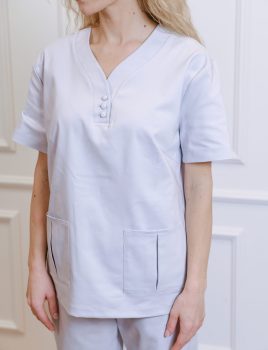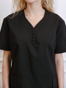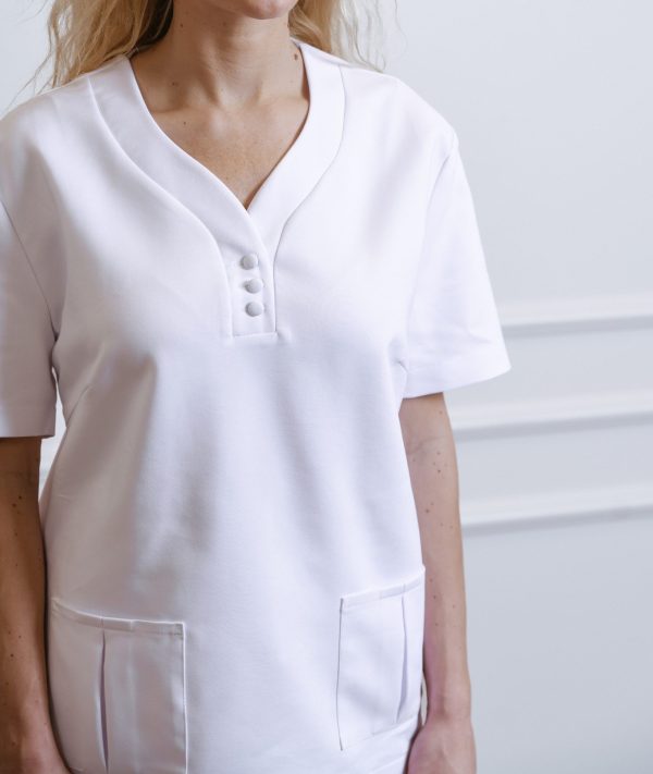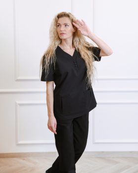 Marškinių trumpomis rankovėmis su kišenėmis bei sagomis ir tiesaus kirpimo kelnėmis su virvele ir kišenėmis komplektas.