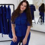 Modelis vilki S dydžio drabužius.