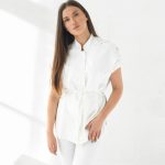 Kimono tipo švarkelis trumpomis rankovėmis.