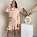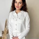 Vanessa - short jacket with long sleeves, round collar, pockets and fabric cowered buttons with silver detail.