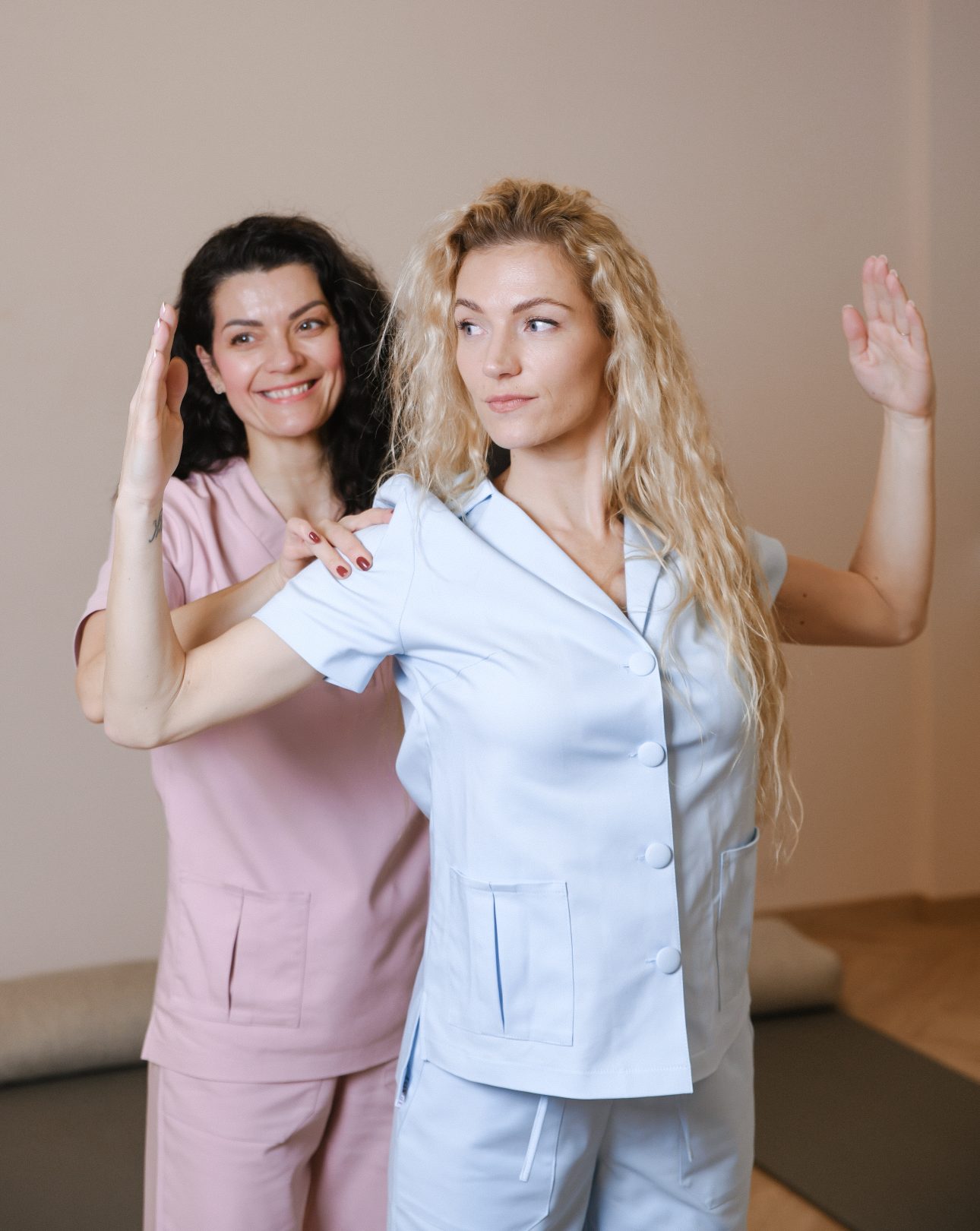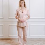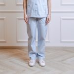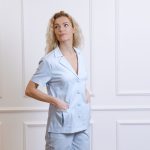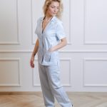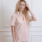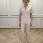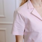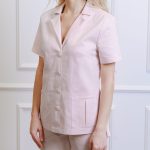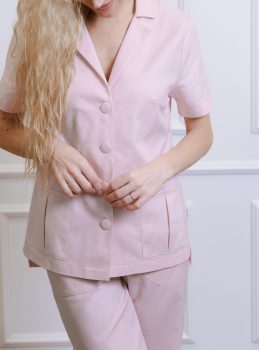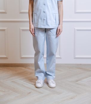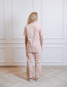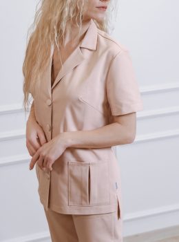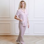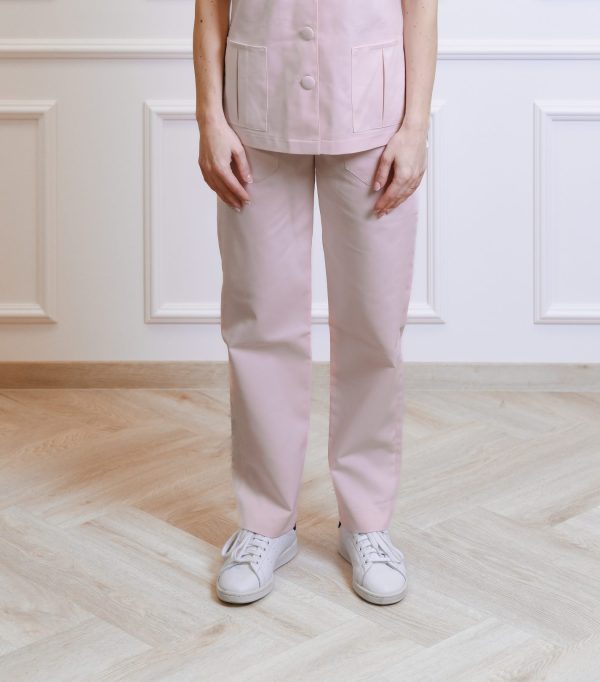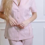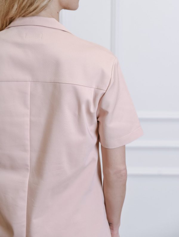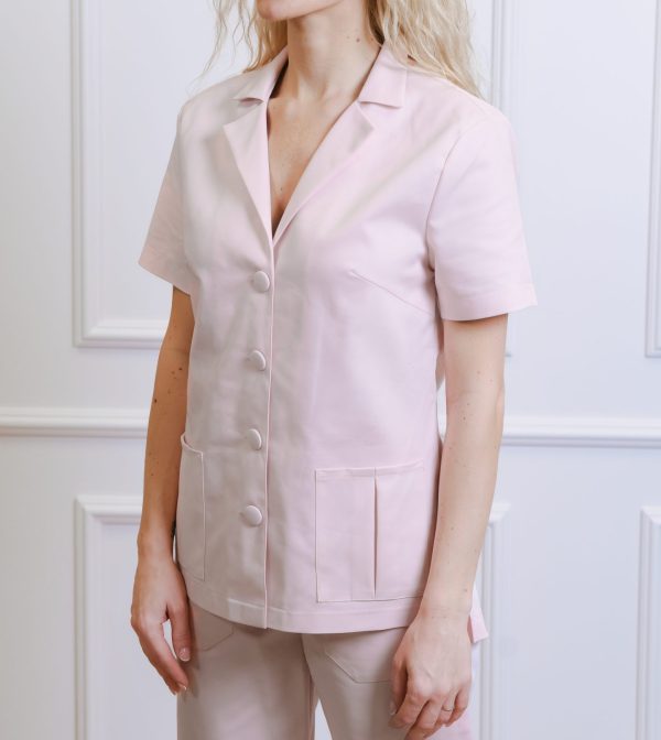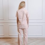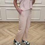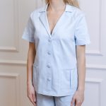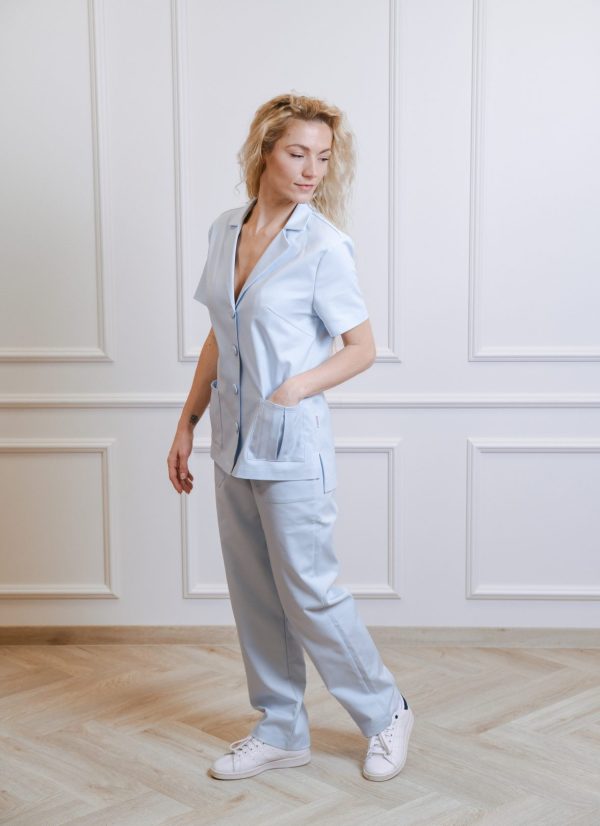 Short-sleeved shirt with pockets and straight-cut pants with a drawstring and pockets set.
